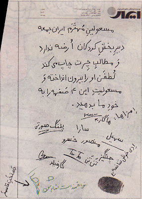 در شماره ۳۱۶۴ کودک و نوجوان ایران جمعه اتفاق جالبی افتاد! بچه ها (منظور همون شخصیتهای ثابت ایران جمعه است!) یه نامه نوشتن که این سردبیر رو نمی خوایم و ... خلاصه قرار شد که اون شماره رو خودشون اداره کنن به خاطر همین یه شکل هشلهفت و در هم و بر همی داشت. متن نامه شونو داشته باشید: